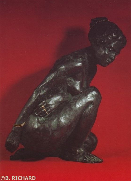 Chez Richard, le marbre taille directe, le cuivre martelé, la résine moulée, le plâtre ou la terre cuite acquièrent un grain. Un pigment qui donnent aux œuvres. en plus de leur expressivité, une véritable intériorité. Sa sculpture ne se donne plus au regard, elle ne s'offre plus au jugement distant, elle invite à la participation et au partage de sentiments en livrant son être en même temps que sa forme.
