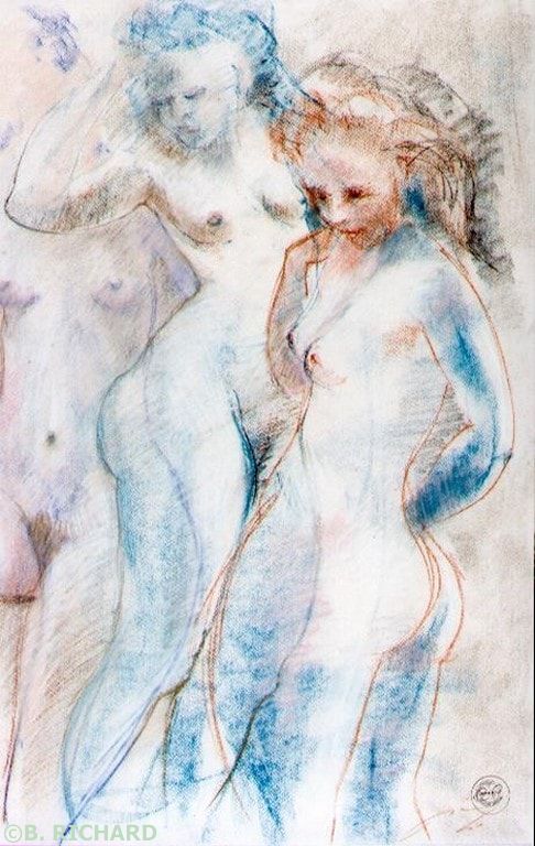 Dans son atelier d'Arcueil, ce sculpteur saint-maurien transforme rapidement l‘aventure en épopée. Comme les grands maîtres de la statuaire grecque, Richard opte pour la représentation du corps auquel il voue un culte esthétique plein de majesté et de glorification sensible. Ce corps, il le transforme, il le purifie, il le hisse jusqu'à une exposition de la valeur fixe, sans pour autant édulcorer sa douce humanité.